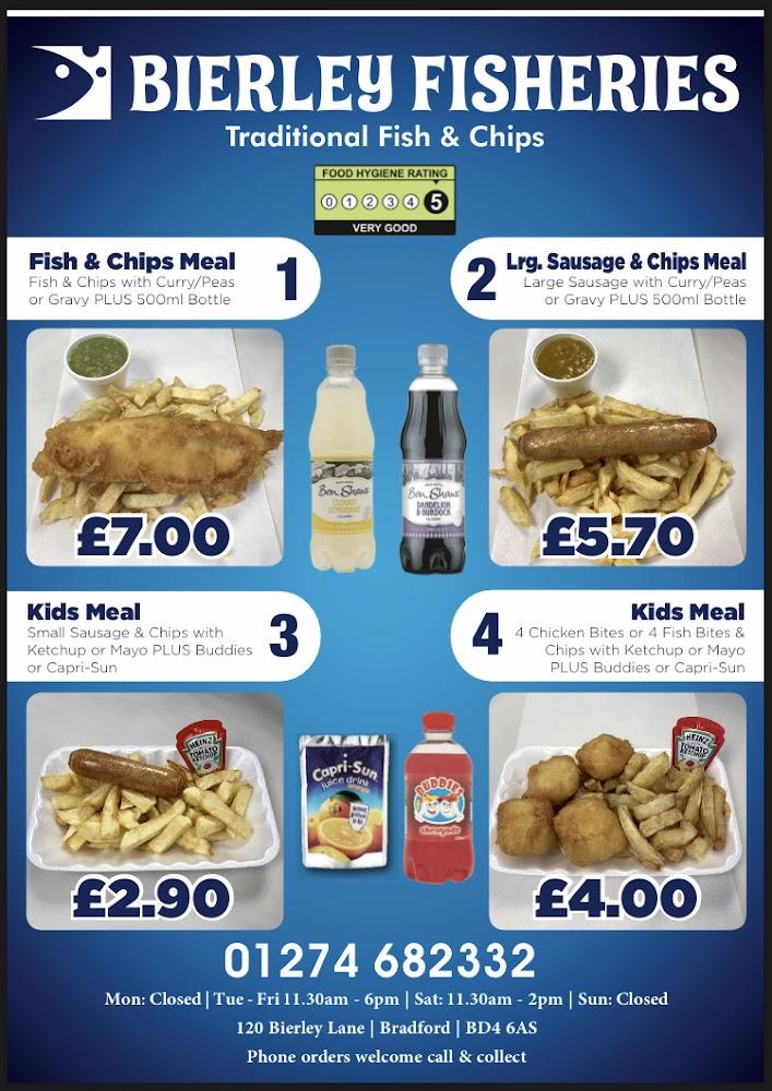 Located at 120 Bierley Lane, Bierley Fisheries welcomes diners with a casual vibe perfect for families and friends. The establishment features ample seating that is wheelchair accessible, ensuring everyone can enjoy their meals comfortably. Known for both lunch and dinner services, it operates conveniently throughout the week to cater to varied schedules. The parking around the area includes free street parking, making it easy for those driving in. The shop has quickly become a local gem, boasting a loyal clientele who appreciate the consistently high quality of food. Bistro-style dining with table service is also available, inviting you to relax and savor the experience. As a true community spot, Bierley Fisheries often buzzes with local chatter and laughter, reflecting the warmth of the neighborhood.